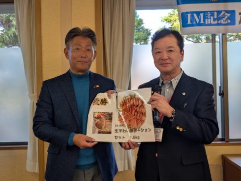 参加賞はIMゴルフ実行委員会須賀委員長の高級卵!