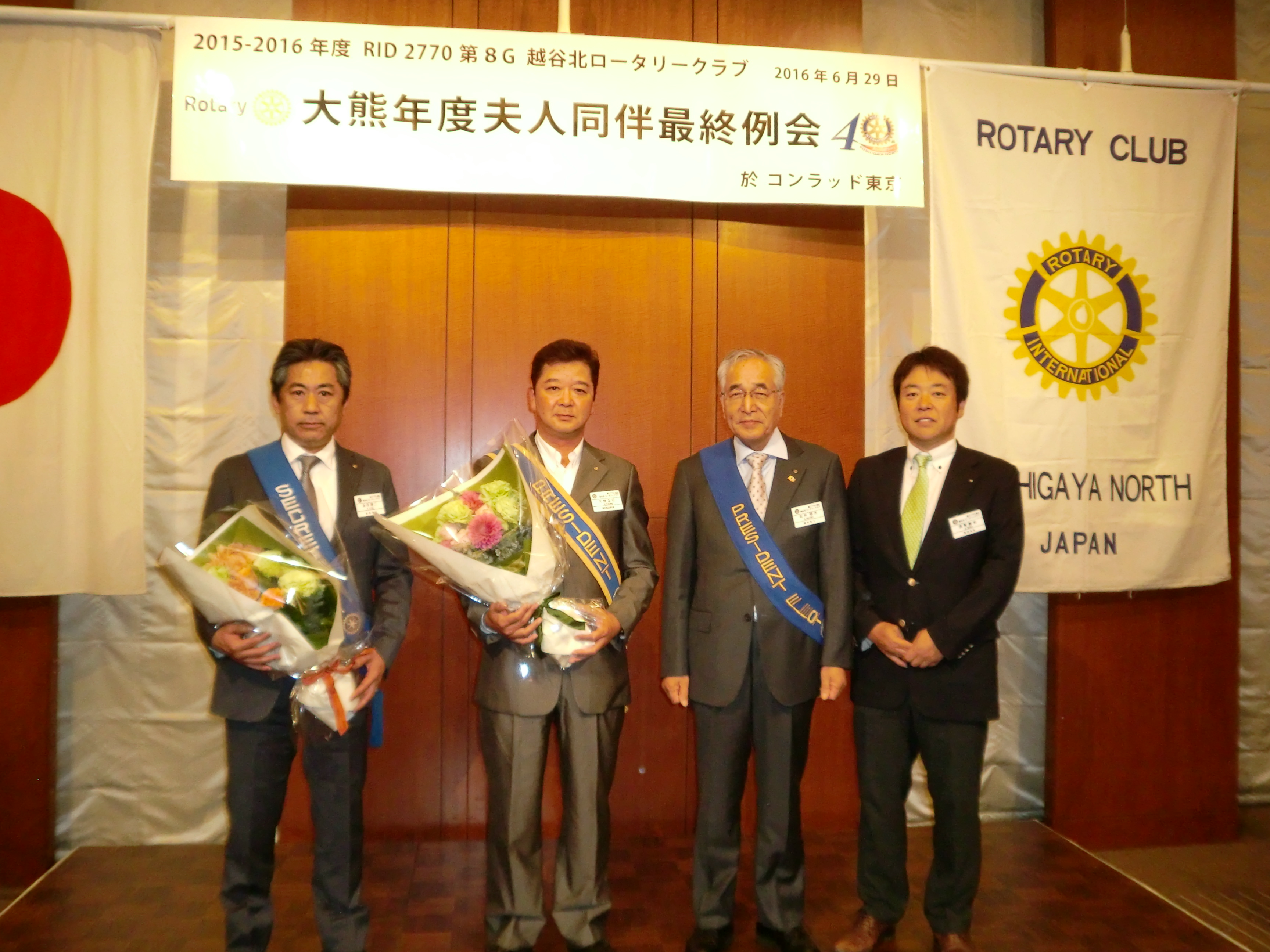 松井会長エレクトから大熊会長へ、そして須賀副幹事から会田幹事へ、花束を贈呈しました。